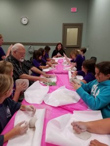 LeRoy Beckham, pictured above, teaching students how to mold clay into a leaf bowl.