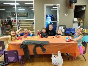 Ms. Becky, with a Drama Academy class during a Halloween party.